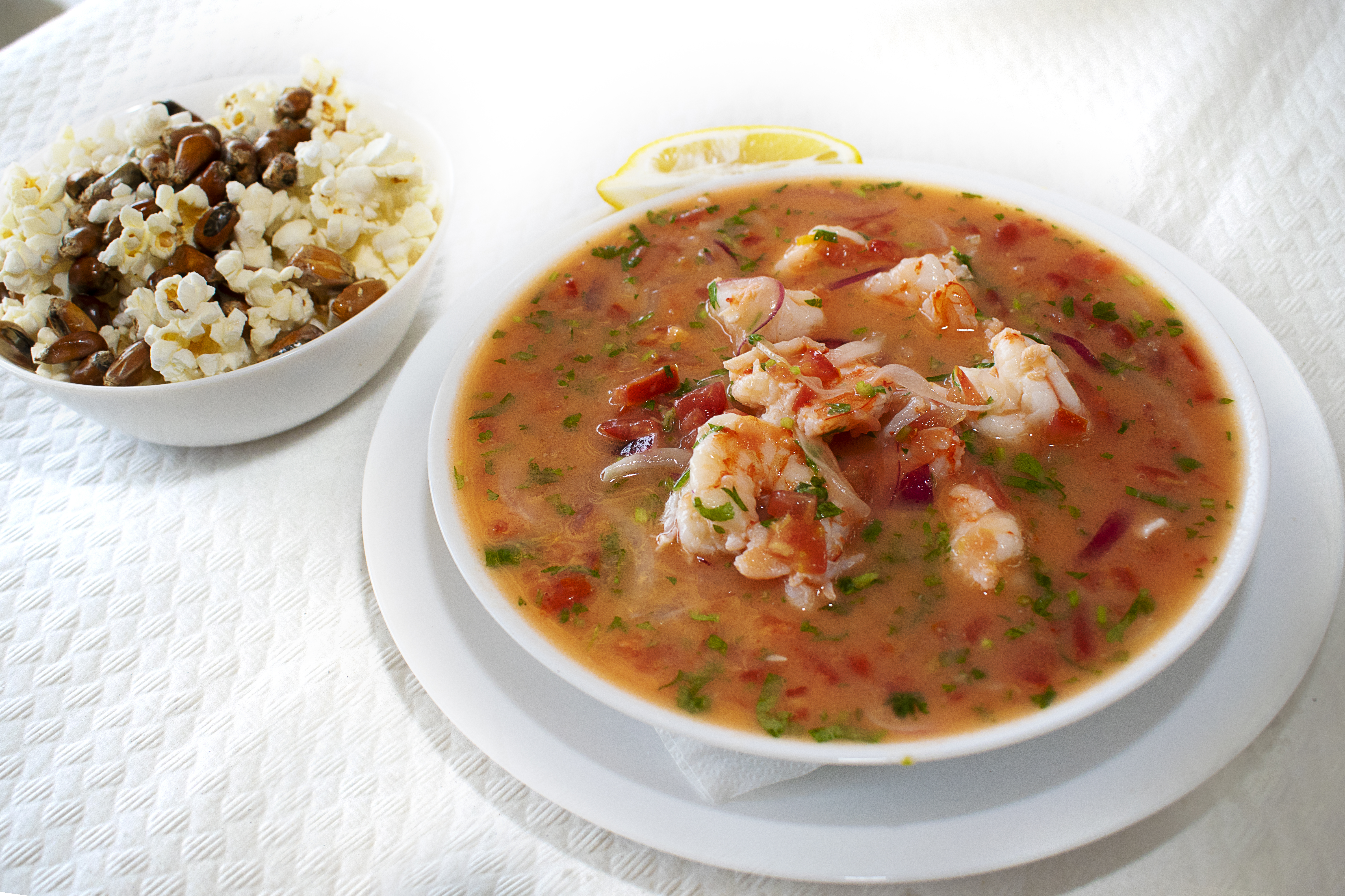 La cocina ecuatoriana también tiene ceviche, y algunos dicen que es el mejor que hay. Nosotros te preparamos una de camarones muy rico y fácil de hacer y con el mejor marisco que puedes encontrar en el norte de España.