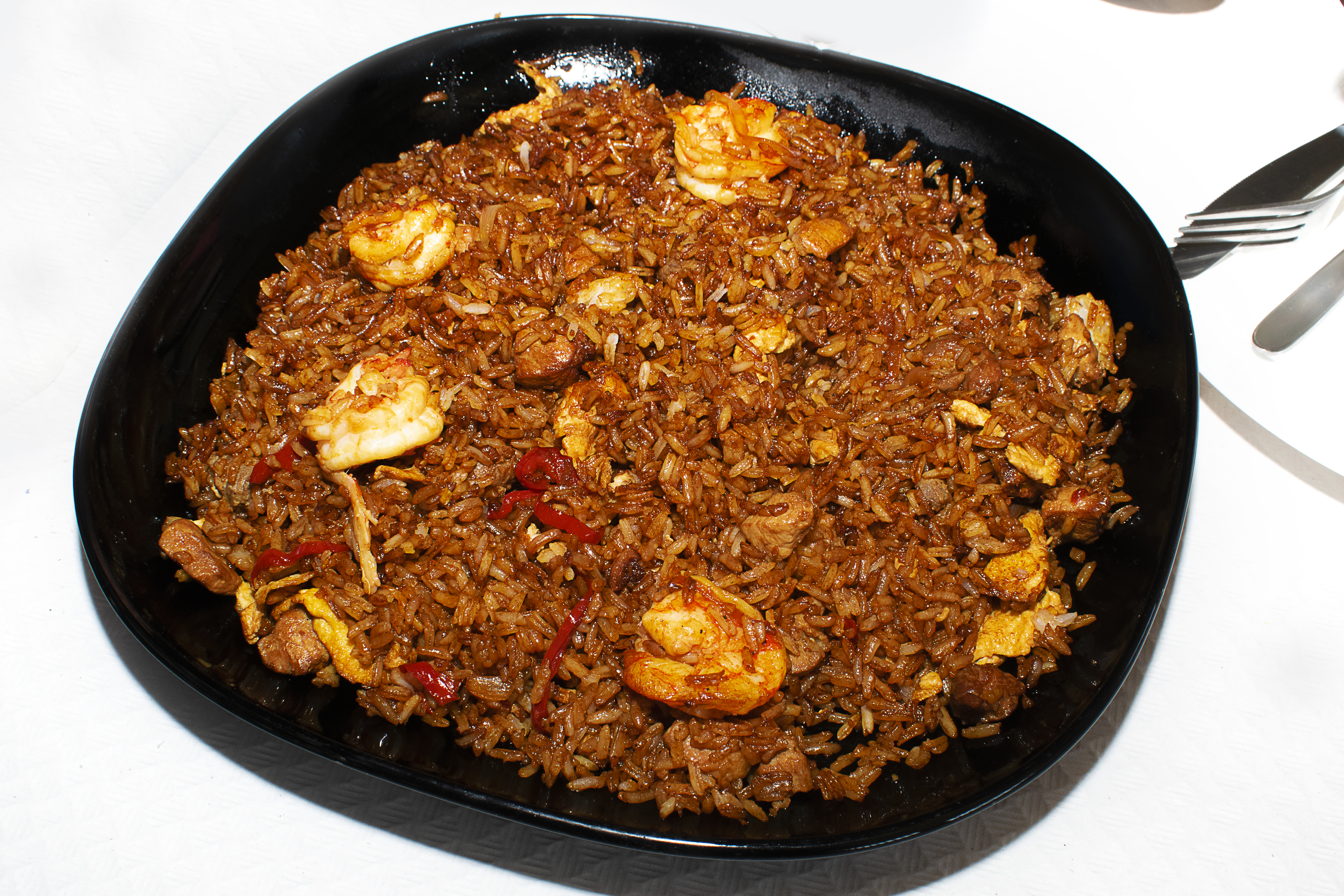 El arroz chino frito, o arroz tres delicias tiene varias versiones criollas, las más rica es la ecuatoriana. Preparado con pollo, cebolla, ajo, pimientos, zanahorias, huevos revueltos, pasas, especias y hierbas, es la fusión ideal de la cocina china y ecuatorina.