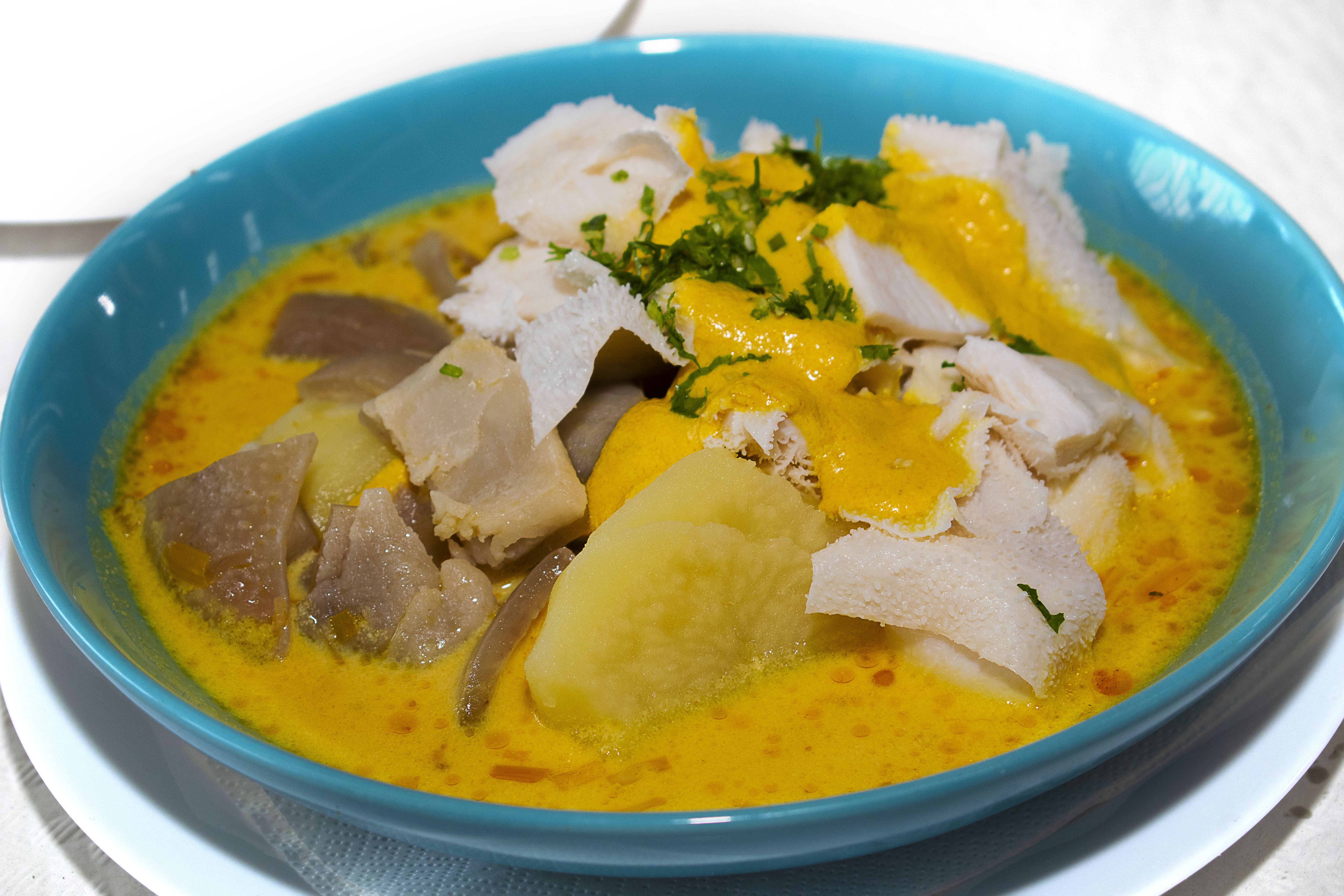 Este es una plato típico de los Andes ecuatorianos, en algunos lugares, como Quito, hay muchos restaurantes con su propia receta y sus fieles seguidores. Aún así, todas estas recetas guardan en común el uso de estomago de res, papas, cebolla, leche, ajo, maní y leche.